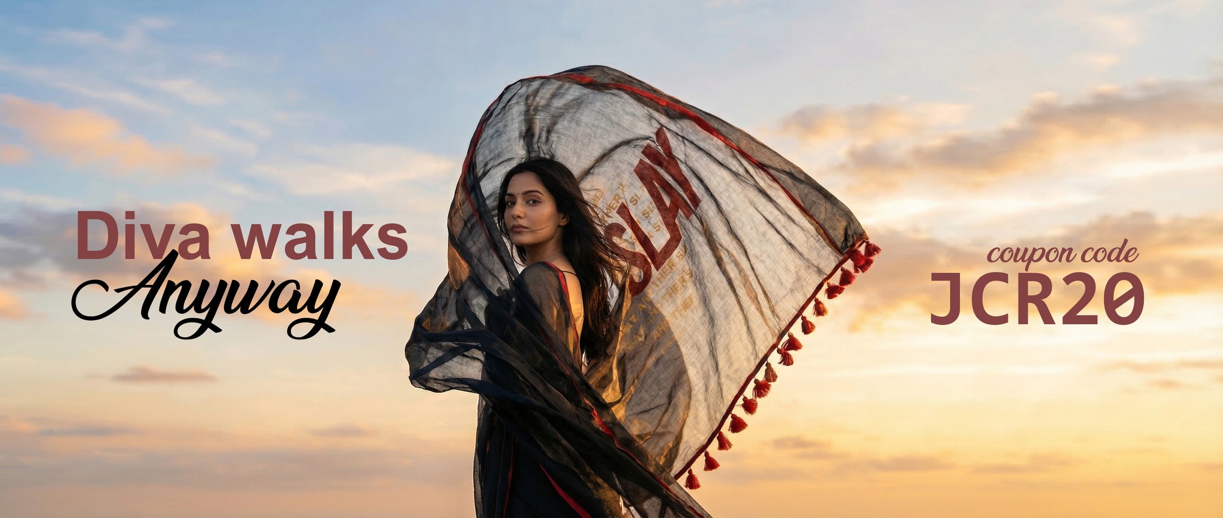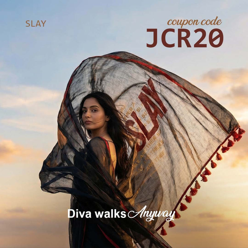 Another Day Another Slay – Black Khadi Saree with Red Piping
