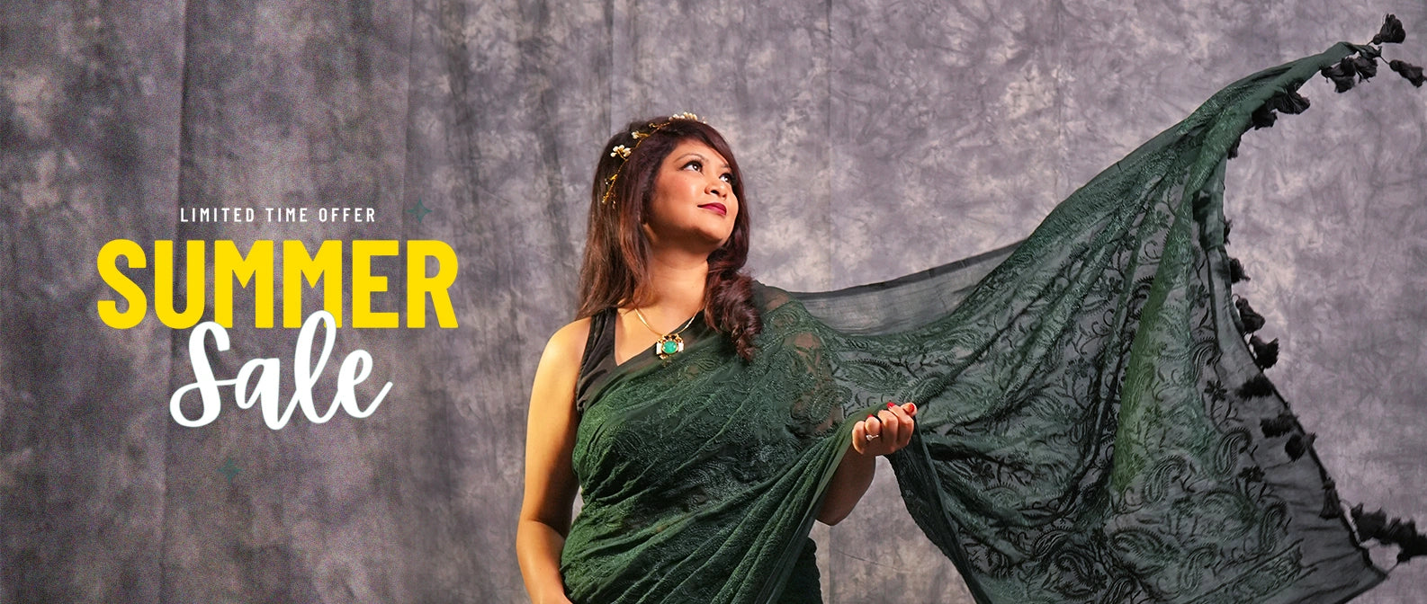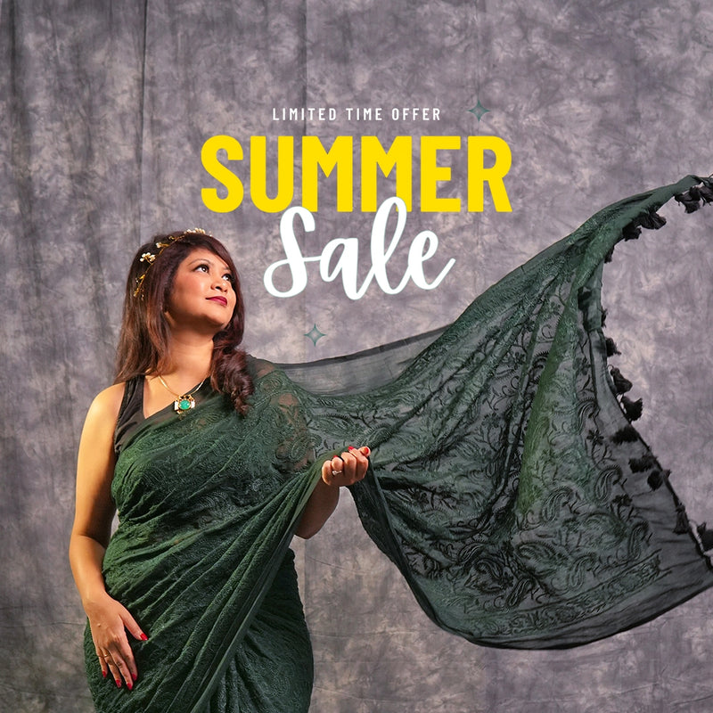 Black & Green Contrast Handcrafted Saree with Tassel Pallu